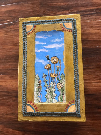 Les pages de garde sont décorées de motifs originaux réalisés à main levée, à l’aquarelle et à l’encre. Les couvertures, quant à elles, sont principalement conçues à partir de papiers japonais assemblés en collage.